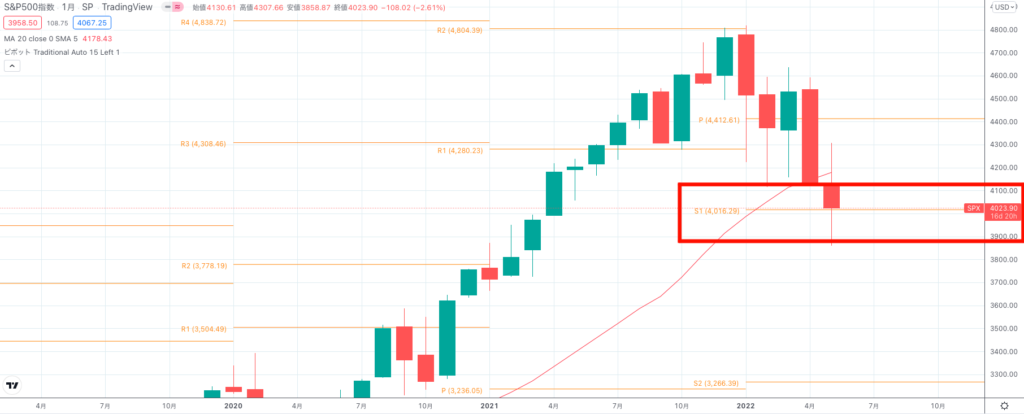 他にもピボット分析を使うと、S1を超えてからヒゲで戻してきています。