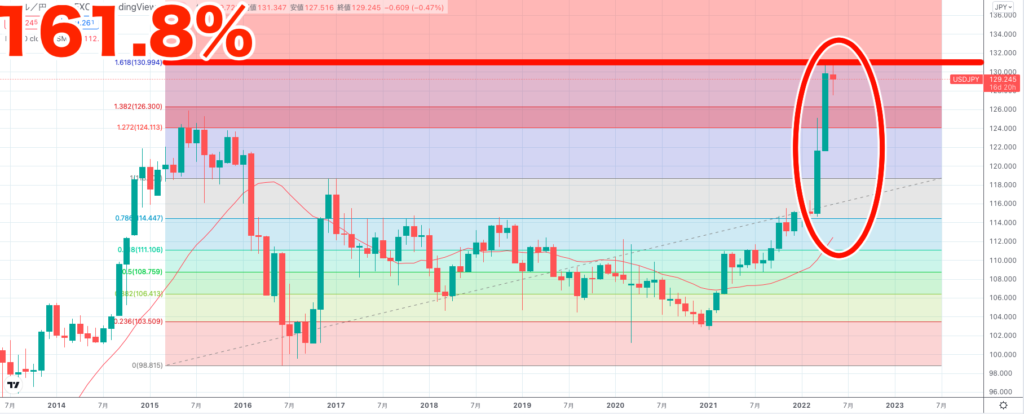 またドル円は前回考察していたフィボナッチ161.8%で効いています。
