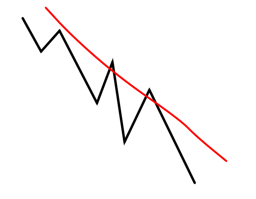 チャートは移動平均線を意識して動くことが多いので、下降トレンドの場合はグランビルの法則6番・7番を形成することが多いです。
