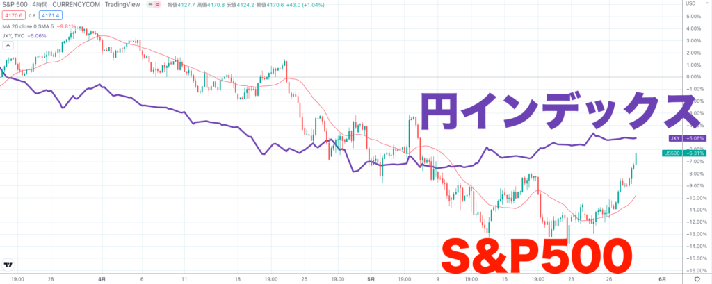 ユウタさん、こんにちは。アメリカ株の1つであるS&P500は最高値をつけてからの下降トレンドに対して約36%戻して上昇しました。