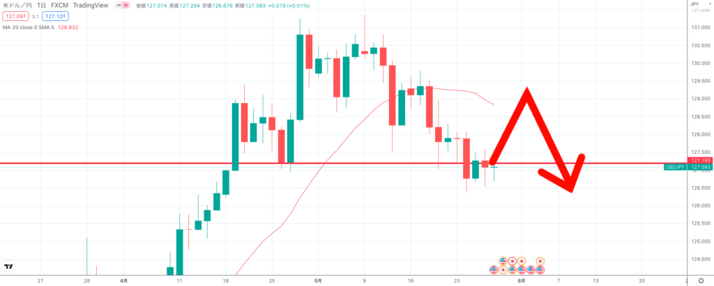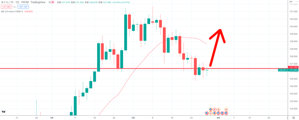 ここから株価が短期的にまだ上昇していく場合、円安となってドル円は上昇する可能性も考えられます。