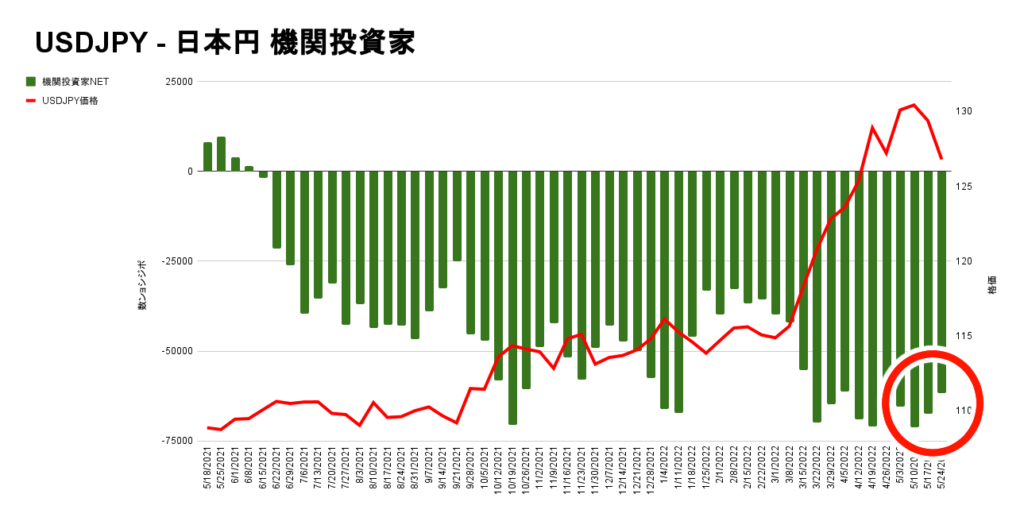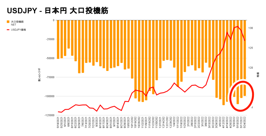 ということは小口投機筋が円の売りポジション量を解消してるなら逆に大口たちは売りポジション量を増やしてくるのではないでしょうか!?
