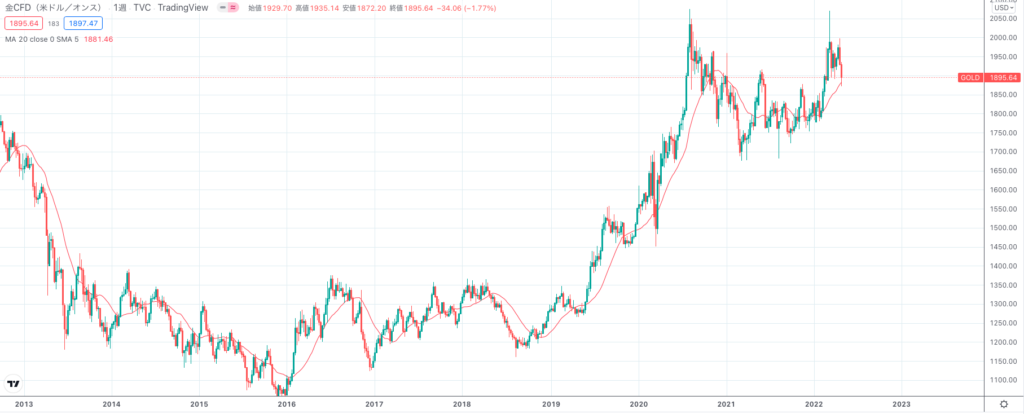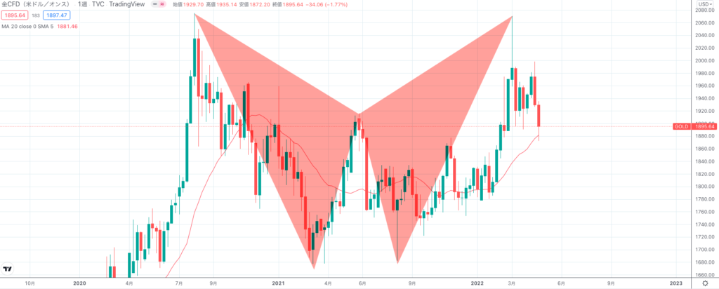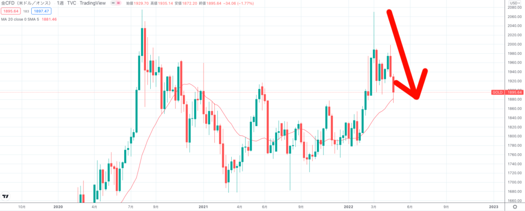 金は以前から下目線で見ており、すでに下落が始まっています。