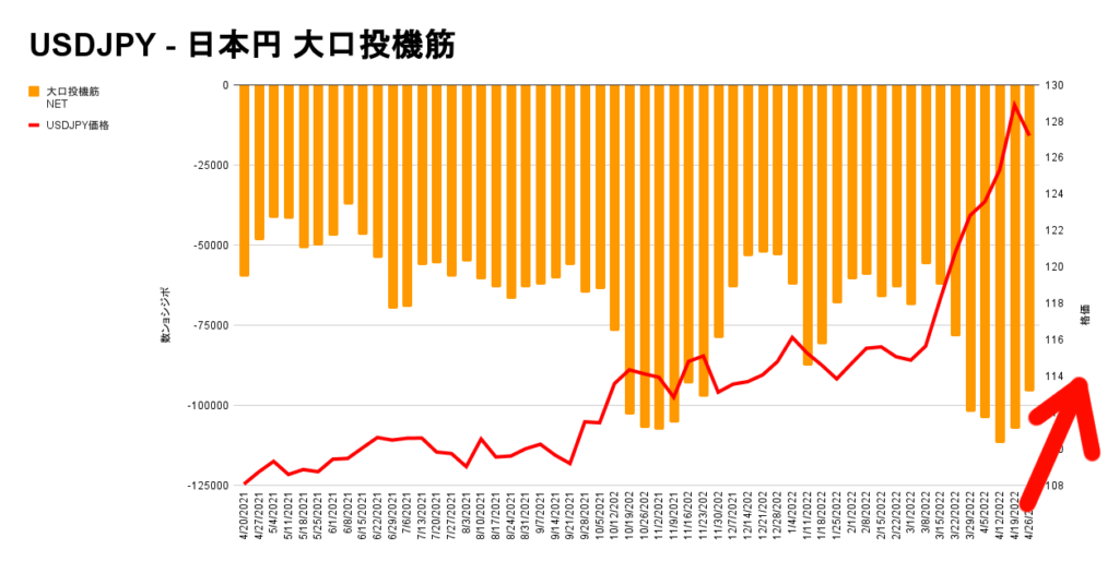 投機筋チャートの見方については、こちらの説明をご覧くださいませ。