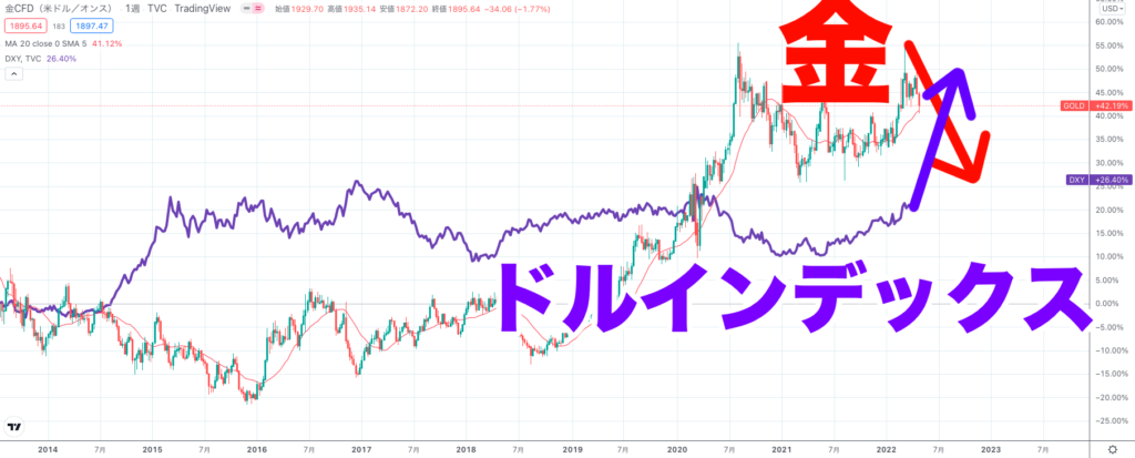 ドルと金は基本的に逆の動き、すなわち逆相関になる傾向があります。