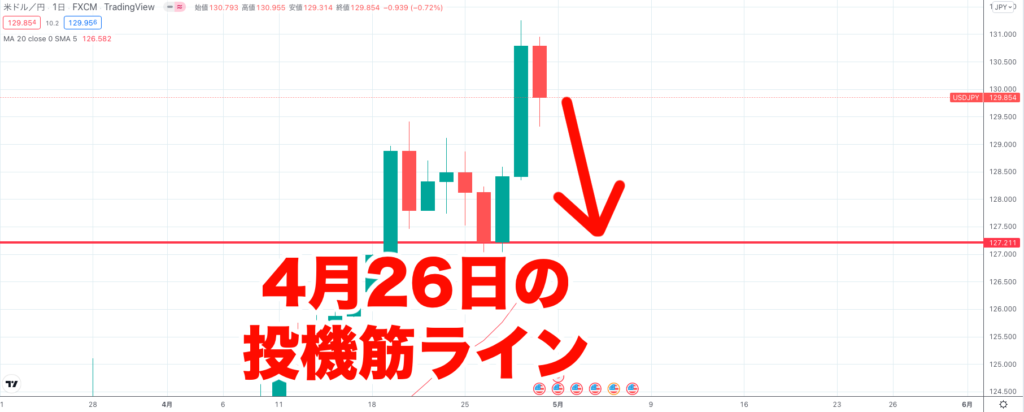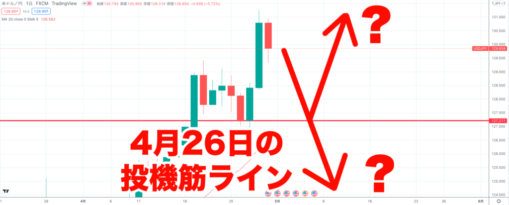 ドル円は先週4月26日の投機筋ラインまで下がる可能性を見ています。