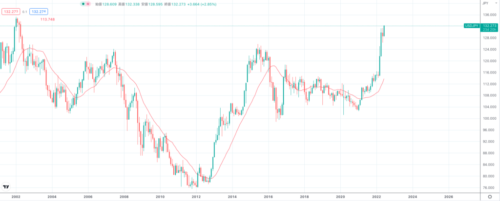 ドル円が132円台へ到達。円安20年ぶり更新へ。