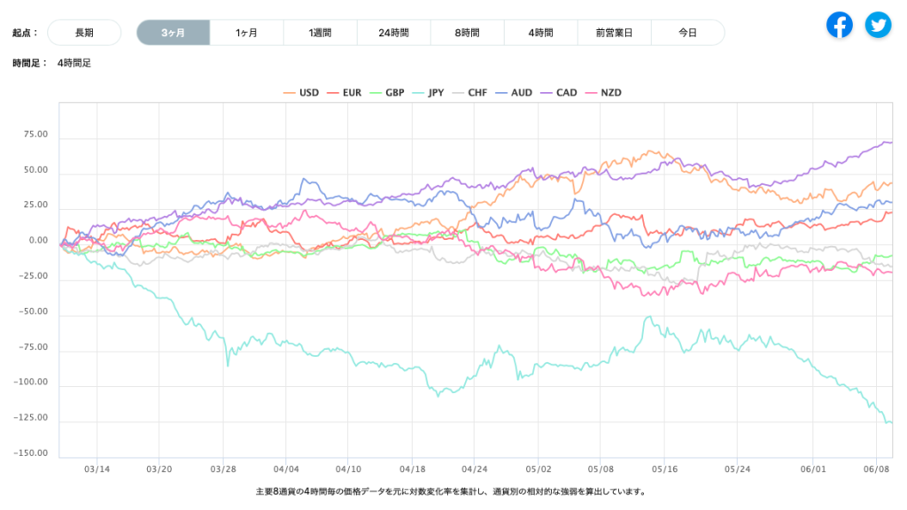ドル円134円台へ。通貨強弱でも円が極端に弱くなっている?
