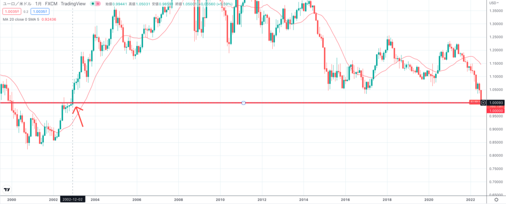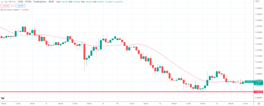 ユーロドルが急落で一時1ドルに。20年ぶりの安値圏か。