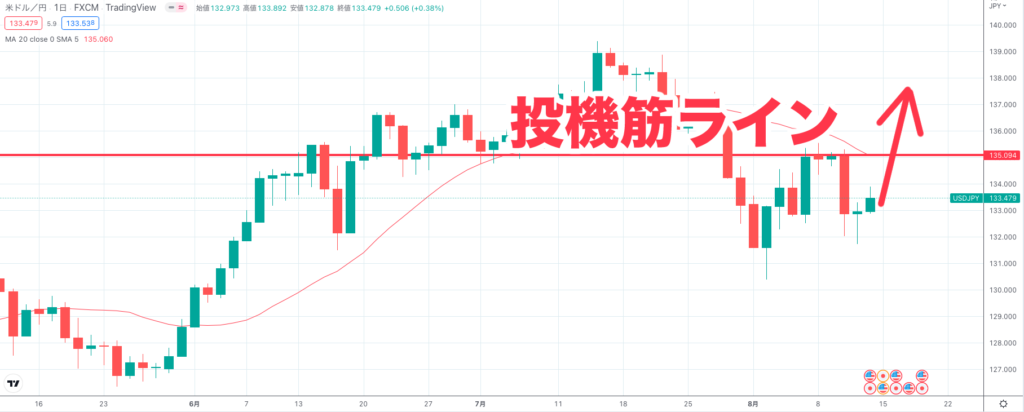 また投機筋ラインを上抜けした場合、参入していた大口らが円を損切りすることも考えられます。