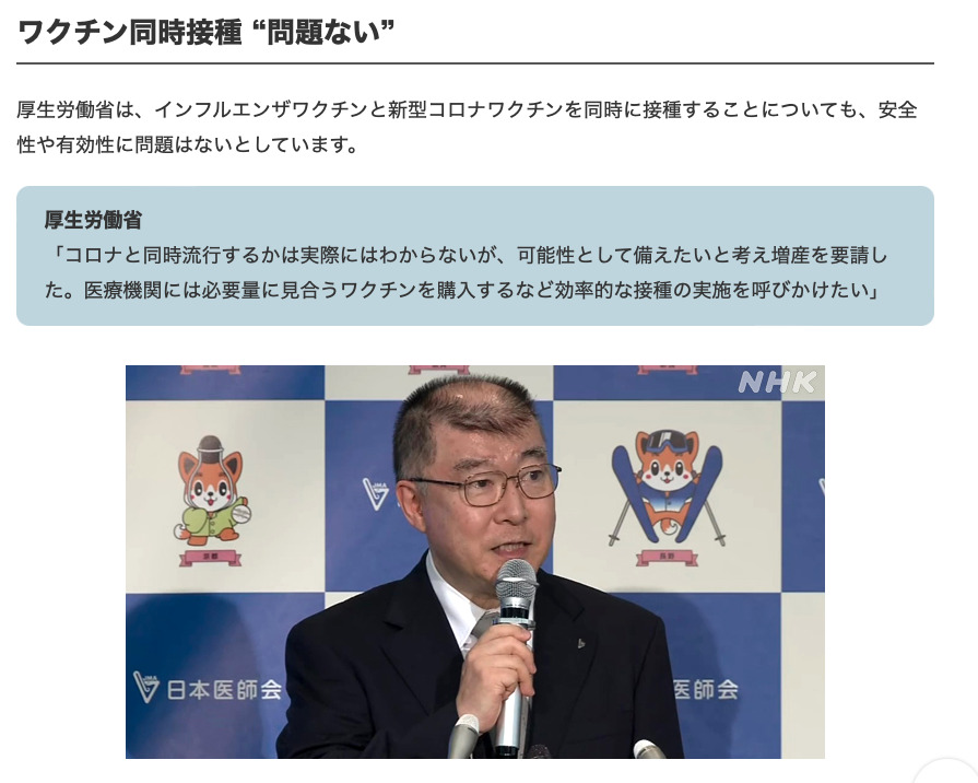 NHK首都圏ナビ『インフルとコロナ同時流行は?ワクチン同時接種 “問題ない”』より引用