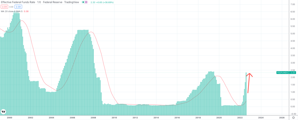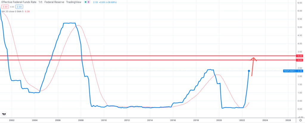 FF金利の誘導目標が3.00~3.25%で、3%を超えるのはリーマン危機前だった2008年1月以来ということは、大きなショックがこれから………。