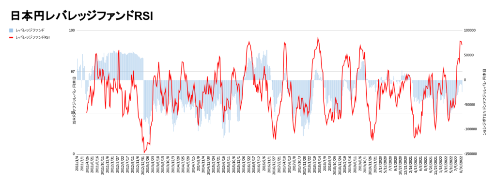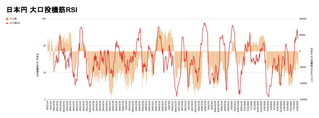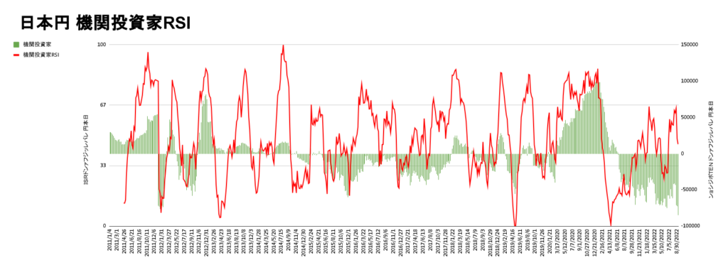 こちらは円の投機筋RSIになりますが、機関投資家は売られ過ぎではありません。