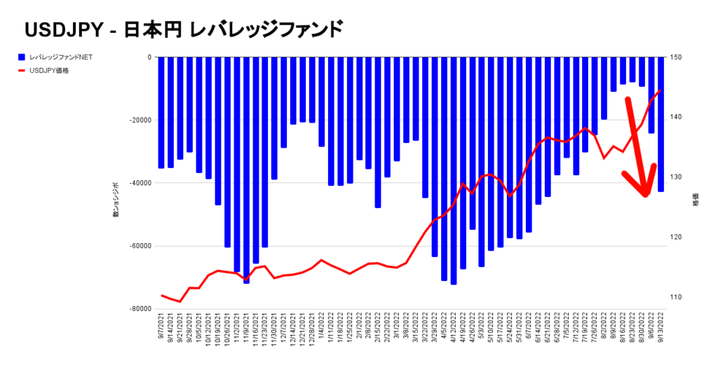 大口投機筋とレバレッジファンドが大きく円売りか。