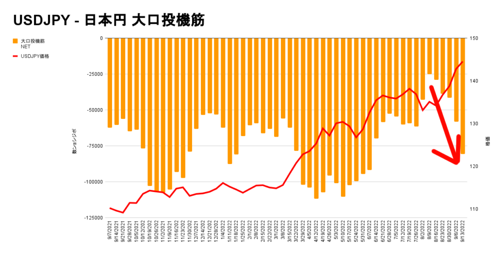投機筋チャートの見方については、こちらの説明をご覧くださいませ。