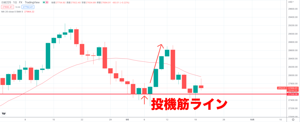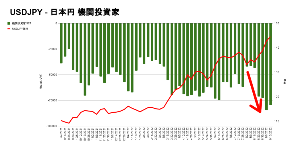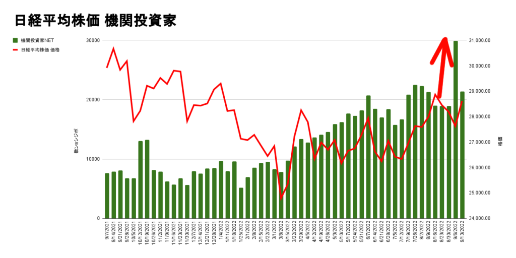 また先々週は機関投資家が日経平均株価を買い越しており、9月6日の投機筋ラインから価格も上昇していました。