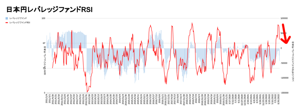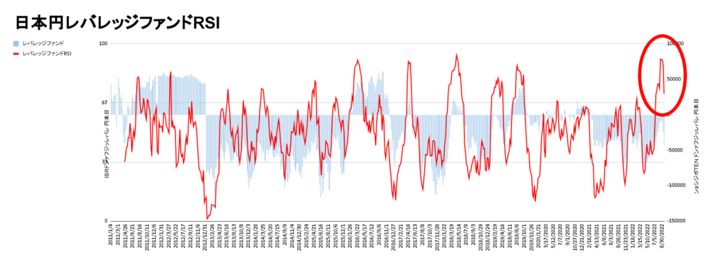 また円の投機筋RSIの動きから大口投機筋とレバレッジファンドが買われすぎを解消し始めたばかりという点においても、まだ円安が続く余地があると思われます。
