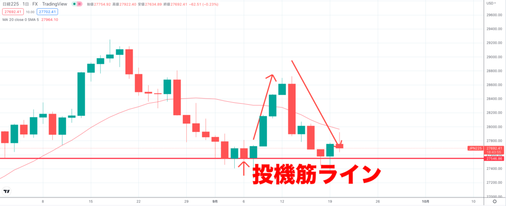 じゃあこの投機筋ラインから日経平均株価はどのように動くのでしょうか?