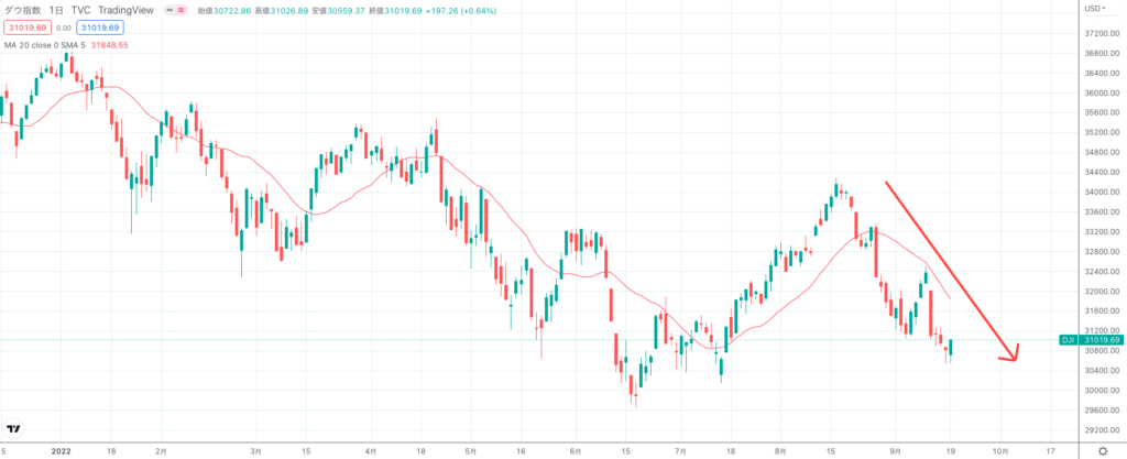 NYダウは連日下落傾向にあり、弱くなっていると考えられます。