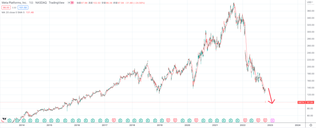 決算発表が一巡したので、5社の時価総額もアップデートしました。いずれも今年は大きく減少しましたが、5社は業態がかなり異なり、下落率には濃淡も。Appleは年初来18%安ですが、Meta (Facebook)は70%安で、時価総額はAppleの9分の1となりました https://t.co/F1I2Aq2KGA pic.twitter.com/sCMN8lgbM1— 後藤達也 (@goto_finance) October 27, 2022