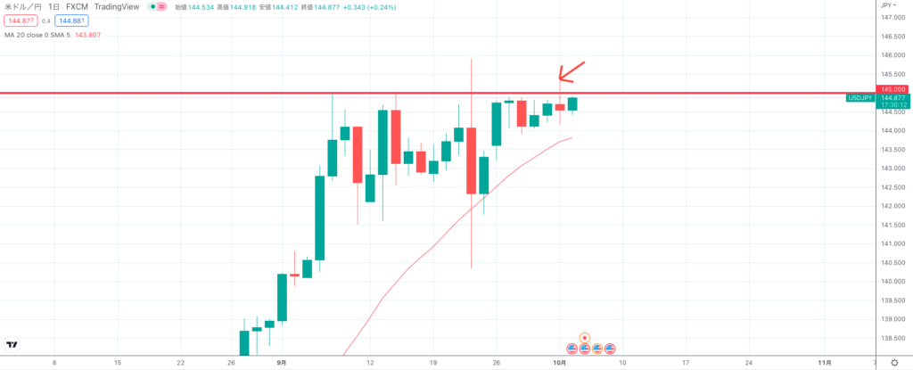 ドル円が再び145円台をつけたか。
