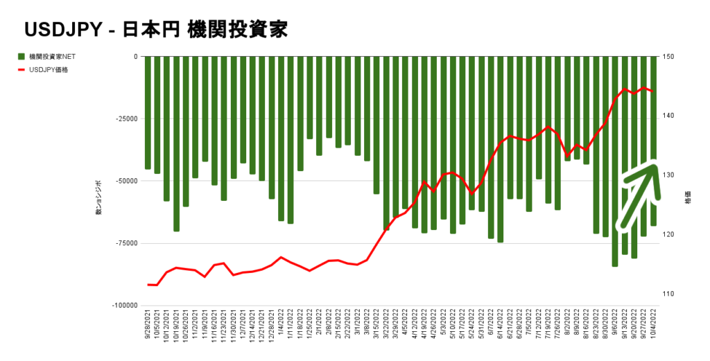 ということは投機筋チャートではすでにドル売り円買いの動きになっているわけですね。