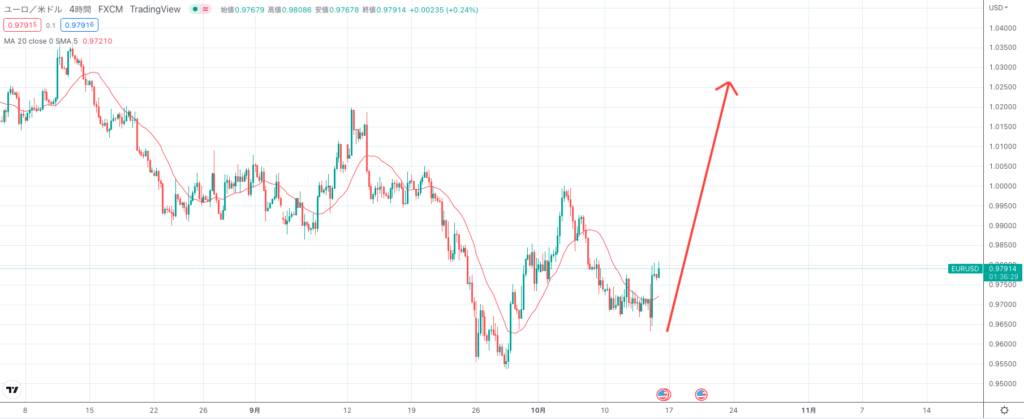 金が買われドルが売られる動きになれば、ユーロドルも上がりやすくなります。