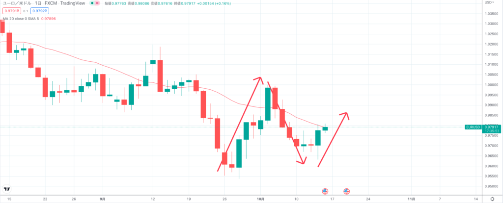 ユーロドルの下降トレンドは終わったか。ダウ理論より解説。