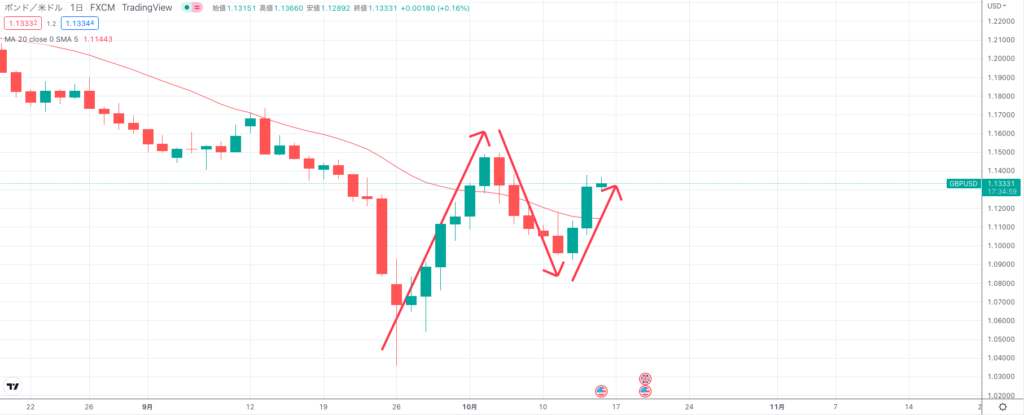 ここから高値も更新していけば上昇トレンドに切り替わったと判断することができます。