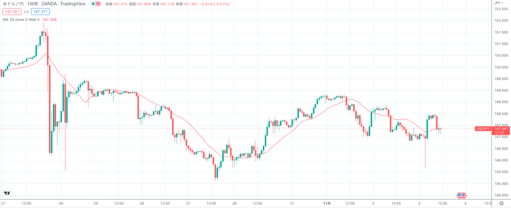 ドル円は黒田総裁の発言を受け、147円台で推移する傾向となりました。