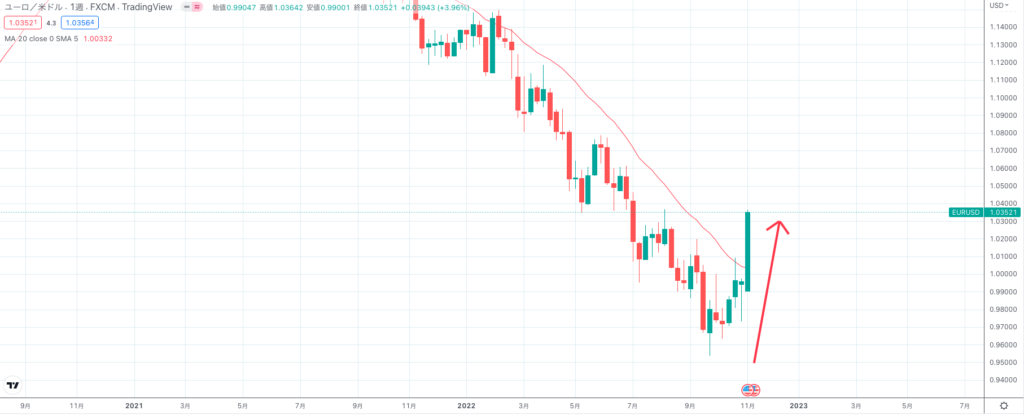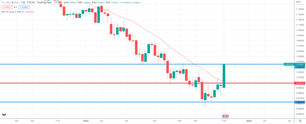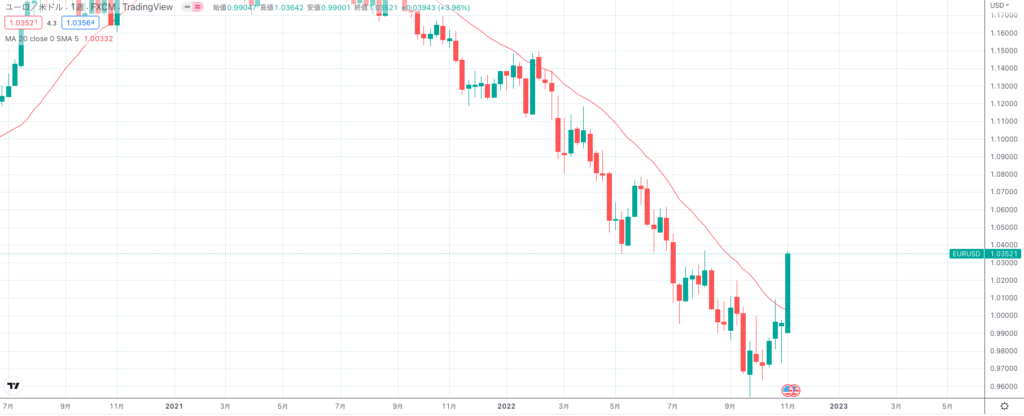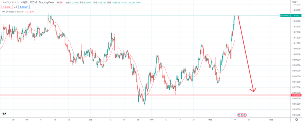 現在のユーロドルは1.035ドルで、すでに0.963ドルでエントリーしたポジションを保有しています。