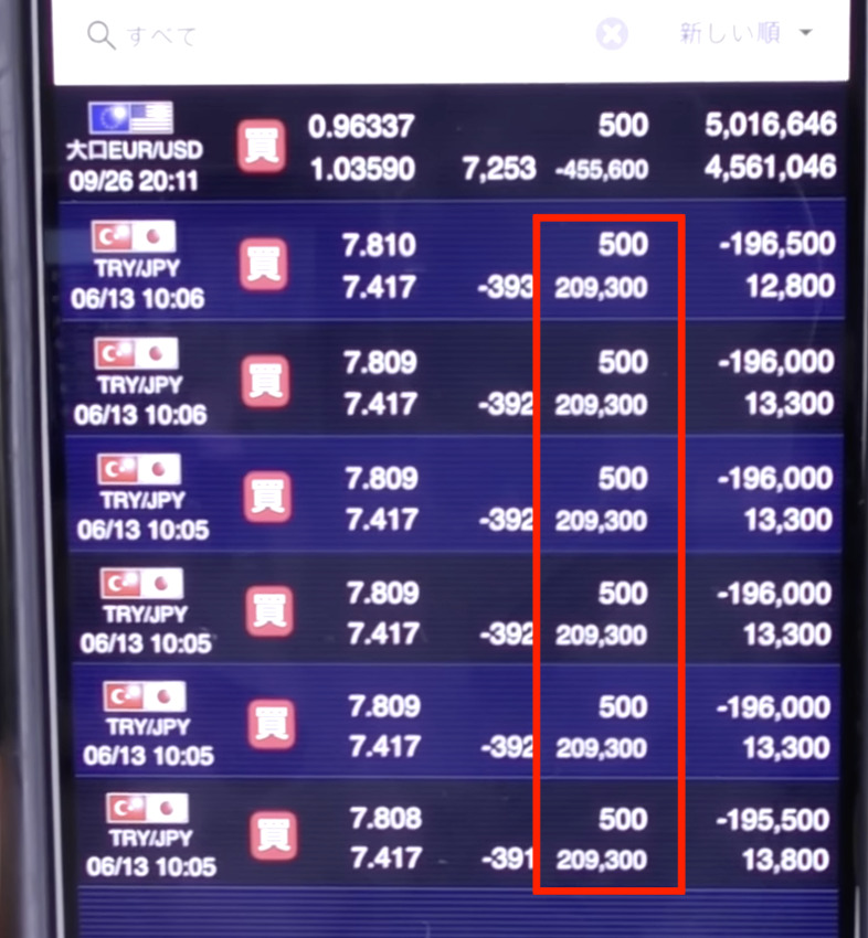 現在はユーロドルとトルコリラ円のポジションのみとなっています。