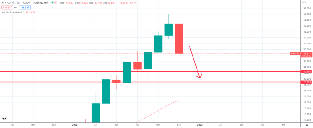 今回はドル円を20万円の利益で利食いしたことや今後はドル安円高相場となる可能性、ドル円は128〜132円まで引きつけて再度ロングする予定について考察していきます。