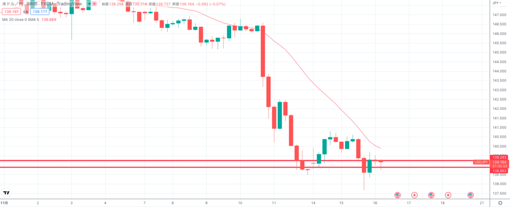 リナさん、こんにちは。ドル円は138.883円と139.243円でロングポジションを1億円で右ストレート狙いしています。