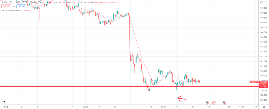 またドル円は一時137円台まで下落したこともあり、優位性の低下からも139.357円のポジションはほぼ建値で決済しました。