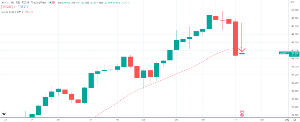 ドル円を1億円ロングしたときは週足で大陰線が出たことでオーバーシュートとなっており、ここからの反発も見込んで優位性を高く見ていました。