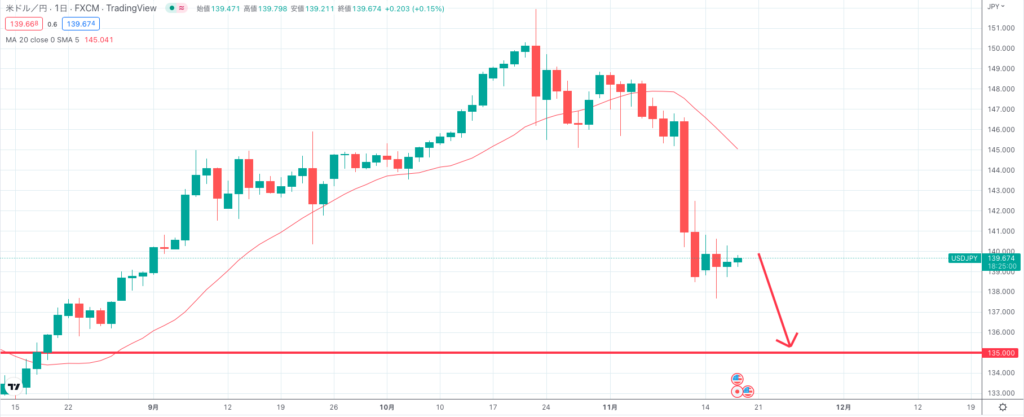 ドル円がもし135円台あたりまで落ちてきたら再度右ストレートでロング狙うをする予定です。