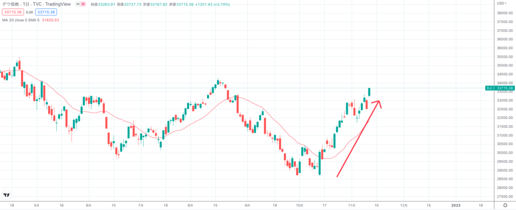 10月の米消費者物価指数(CPI)の伸び率が事前予想を下回ったことで、利上げペースが鈍化するとの期待から米国の株価は急反発。為替相場は円高に振れています。https://t.co/cvbpirdNR0