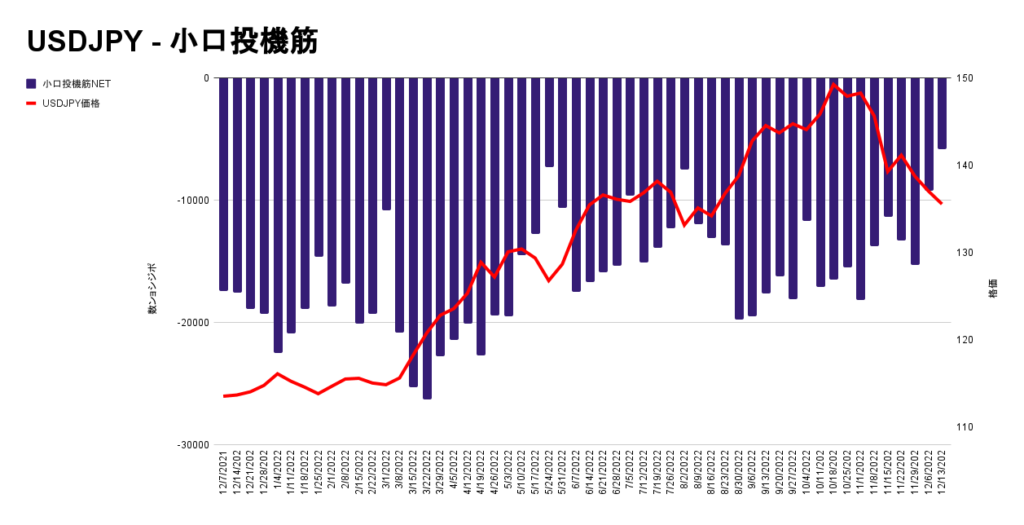 毎週土曜日に更新している投機筋チャートにおいて、ドル円に対する円の小口投機筋のポジション量に明確な動きがありました。