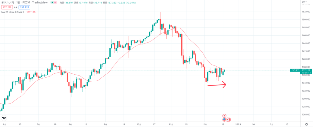 そうですね。ここからドル円は一旦上昇傾向となり、連動してユーロドルは下落すると考えました。