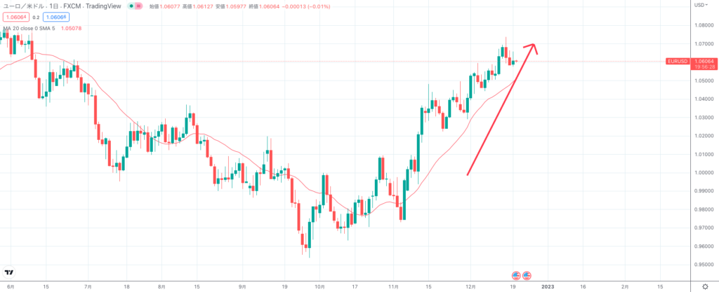 ドル円ではなくユーロドルを選択した理由に、直近のチャートの動きがあります。