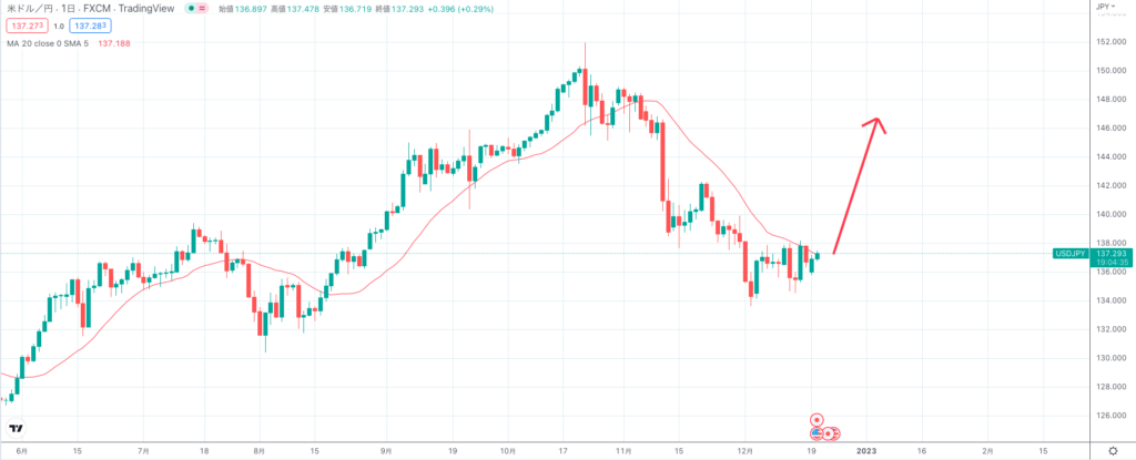 ユーロドルの短期的な下落が来る根拠に、まずドル円の動きがあります。