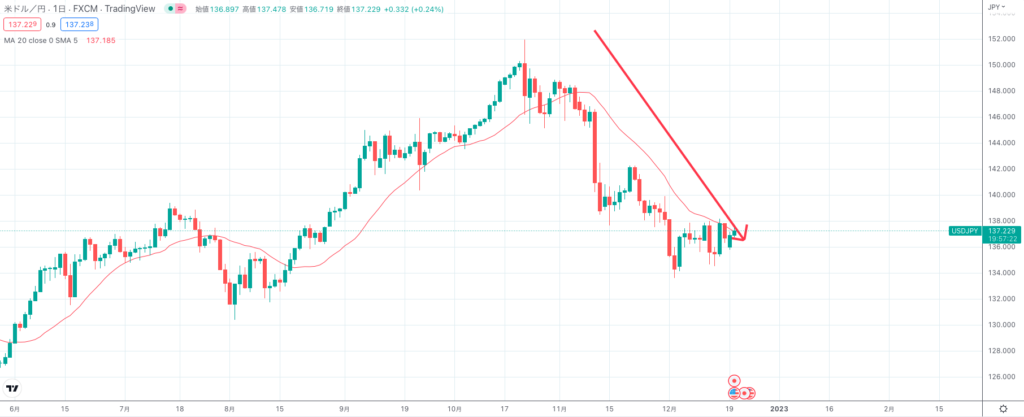 まだエントリーしたばかりでドル円は含み損ですが、ドル円がここから上昇するテクニカル分析からの根拠もあります。