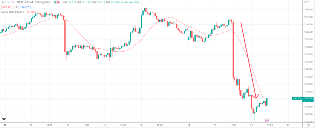 また金融緩和縮小によって事実上の利上げとなり、円の金利が上がったことで円買いの流れとなってドル円はファンダメンタルズ的に下落したと考えられます。