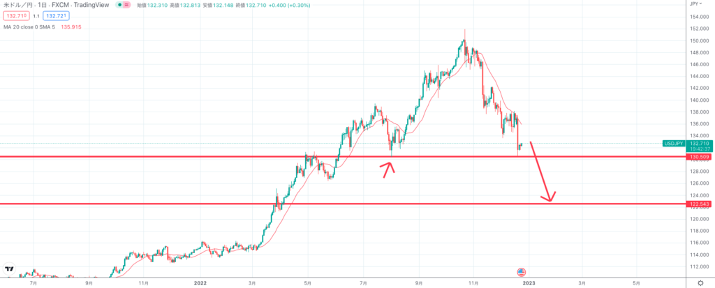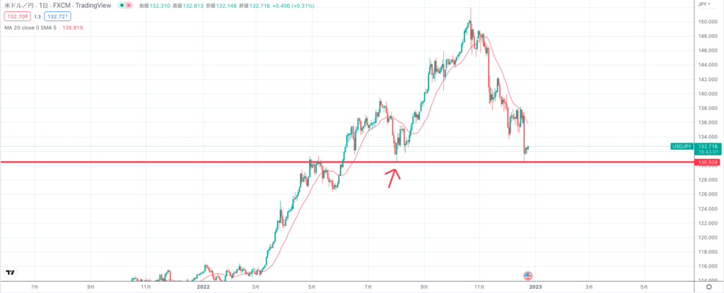 またドル円については2022年7月後半につけた安値である130.509円のサポートラインを注目しています。