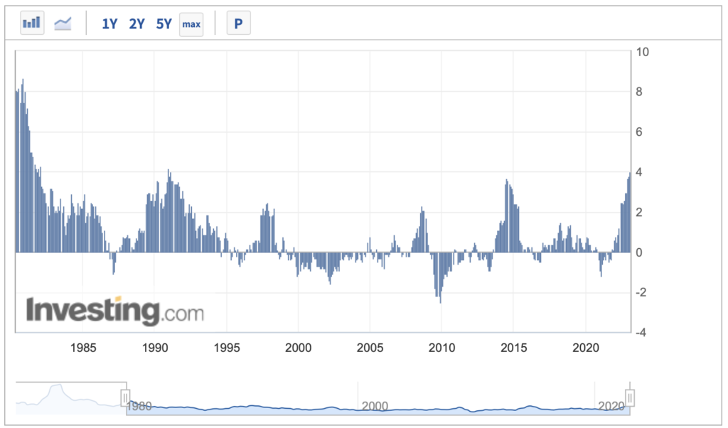 2022年12月の消費者物価指数(CPI、2020年=100)は変動の大きい生鮮食品を除く総合指数が104.1となり、前年同月比で4.0%上昇しました。第2次石油危機の影響で物価が上がっていた1981年12月(4.0%)以来、41年ぶりの上昇率となっています。#消費者物価指数 https://t.co/eqI49muSl5 pic.twitter.com/fgPeMoZISv