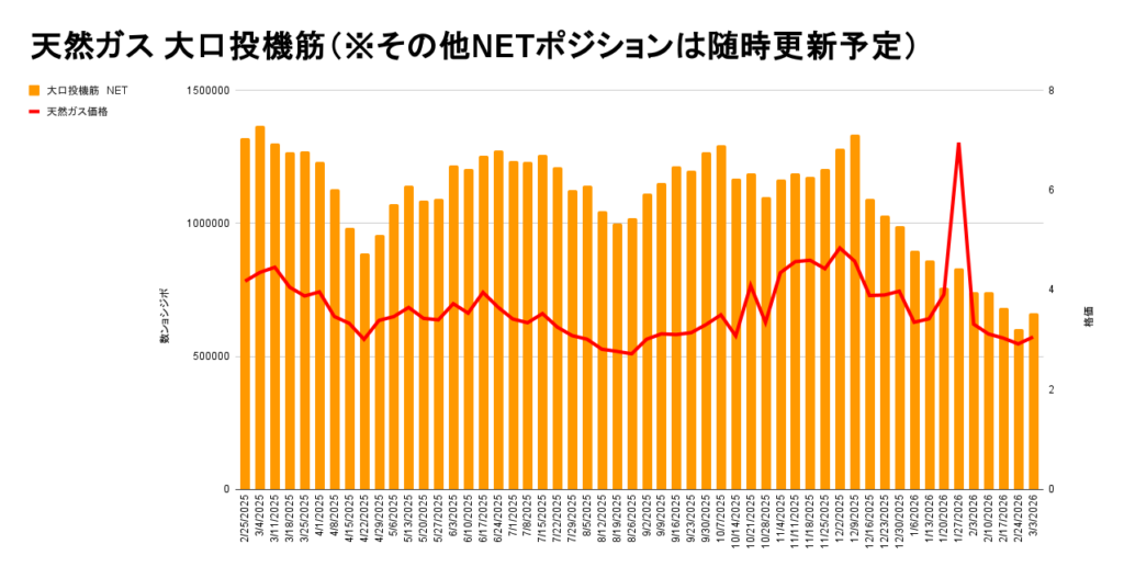 また天然ガスに関して投機筋チャートにも動きが見られました。