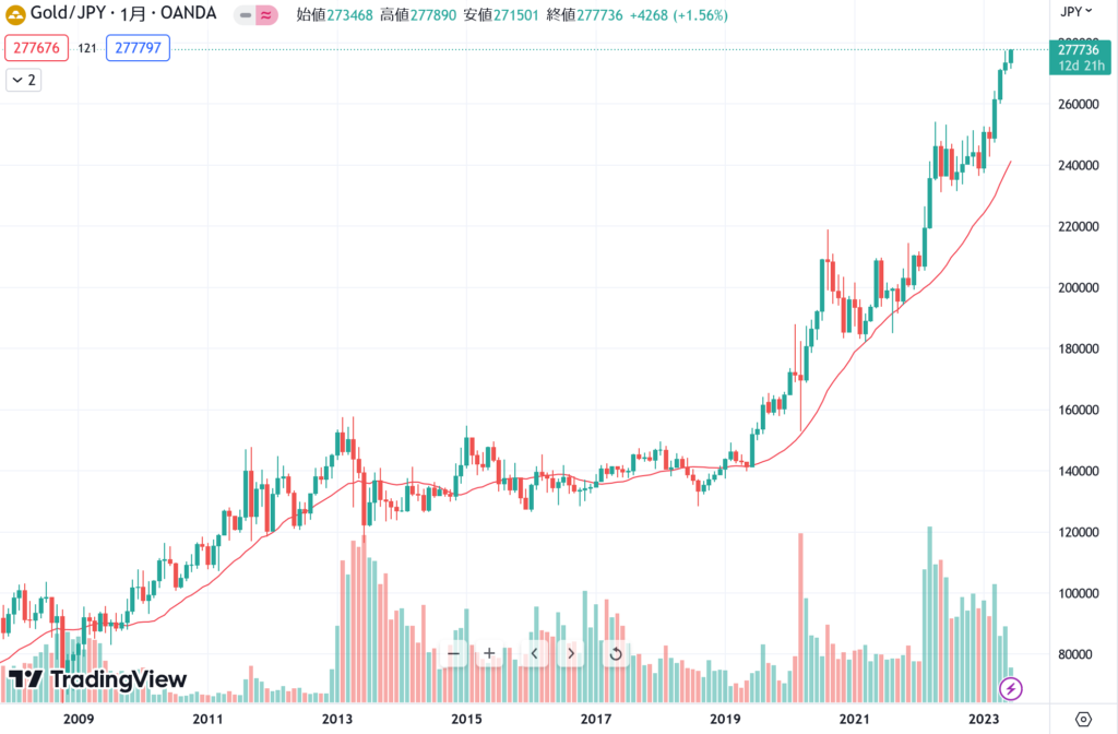 現在円安が進んでおり、円建ての金チャートでは最高値を更新しています。