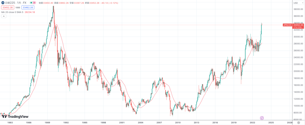 日経平均株価は一時バブル後の終値最高値を更新へ。