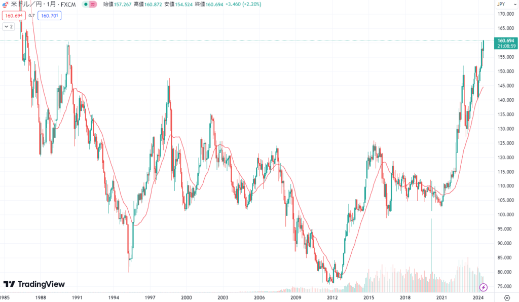 ユウタさん、こんにちは。円相場が1ドル160円台後半と37年半ぶりの円安水準に達しました。